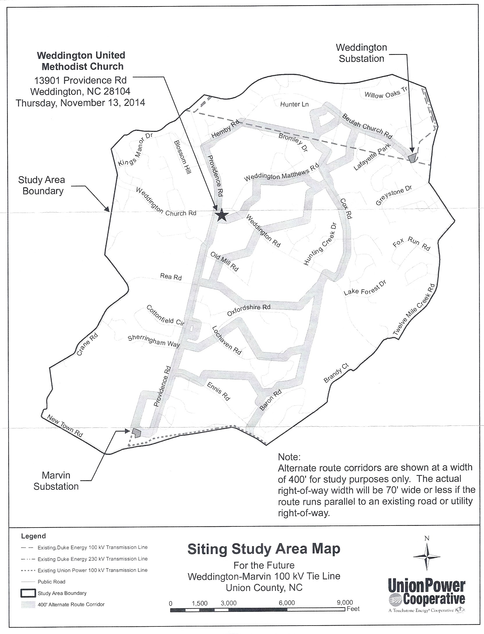 March 18, 2015 – The new route has been selected by Union Power to be located along Providence Road up to Hemby Road. You can view the route map and letter mailed to area homeowners here: